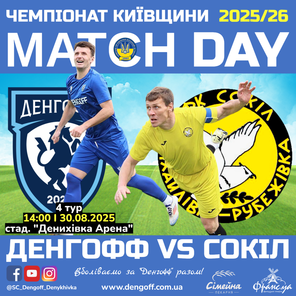 Початок гри 14:00, стадіон “Денихівка Арена”, с. Денихівка, Київська область.