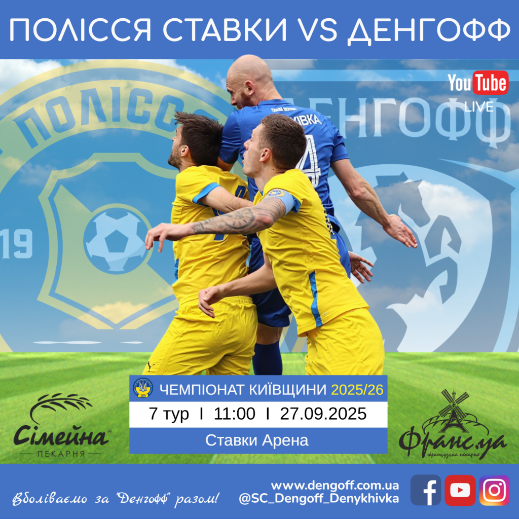 27 вересня (субота) поєдинок 7 туру вищої ліги ювілейного 90-го Чемпіонату Київщини 2025/26.