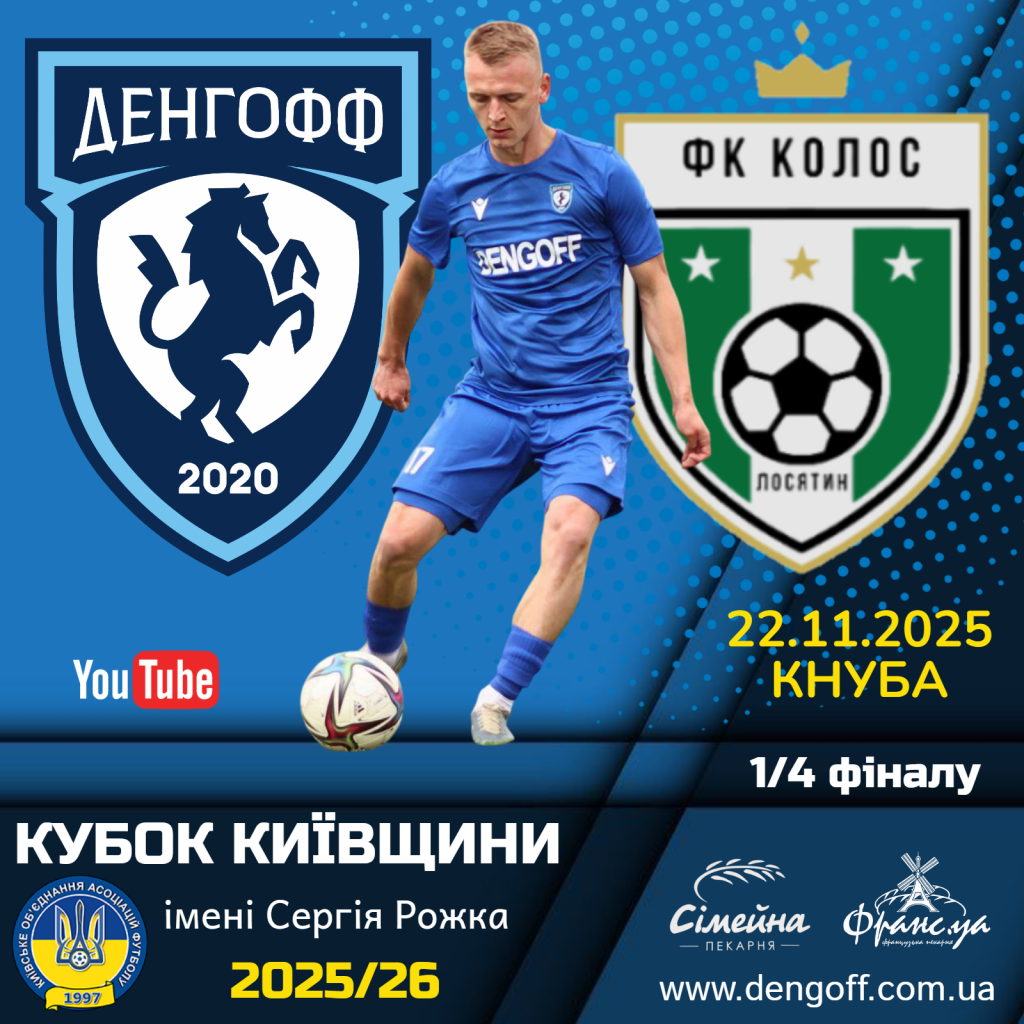 В 1/4 фіналу Кубку Київщини 2025/26 ім. Сергія Рожка цієї суботи “ДЕНГОФФ” зустрінеться з “КОЛОСОМ” (Лосятин).